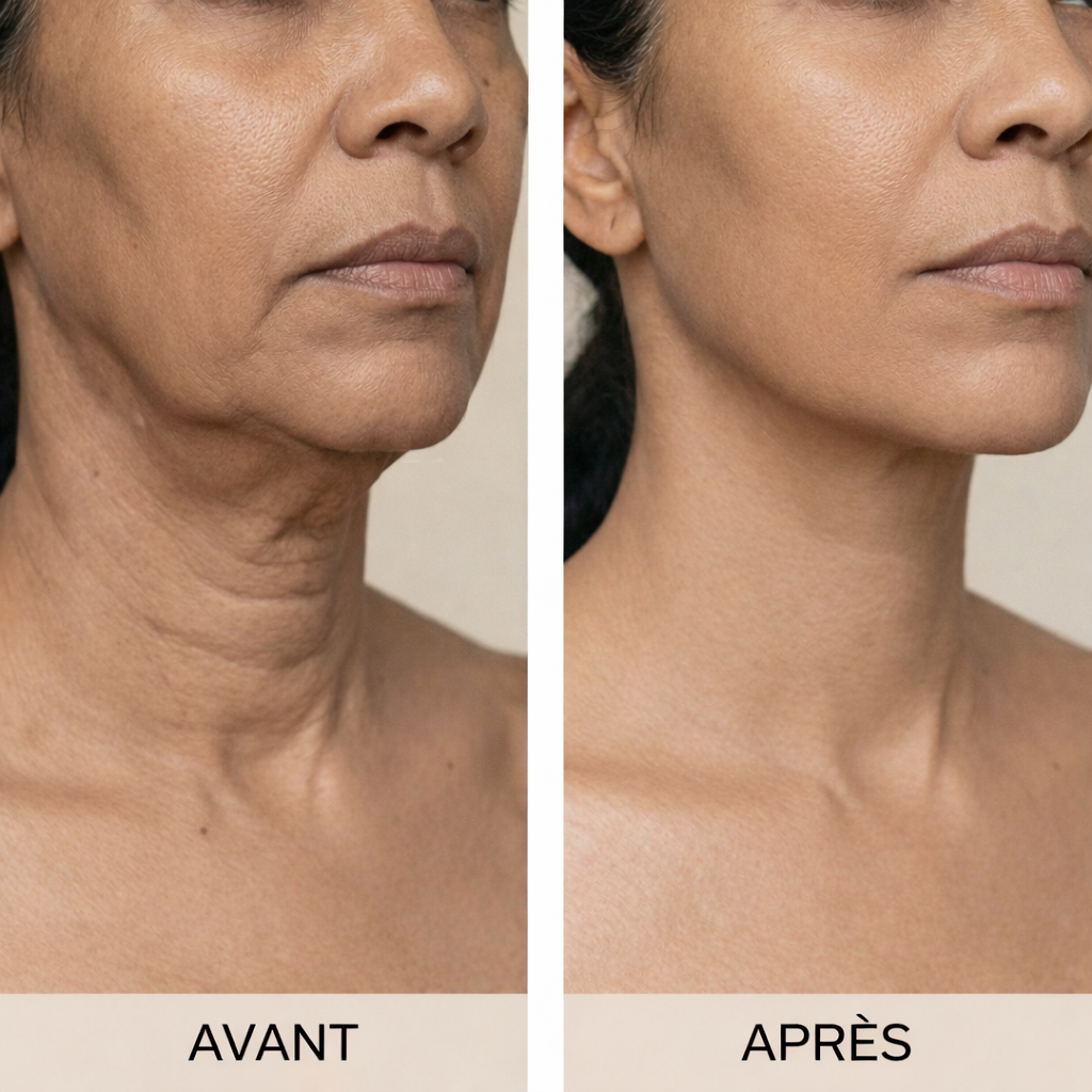 Obtenez une peau plus ferme et des contours redessinés, sans douleur ni coûts élevés comme avec les traitements esthétiques.